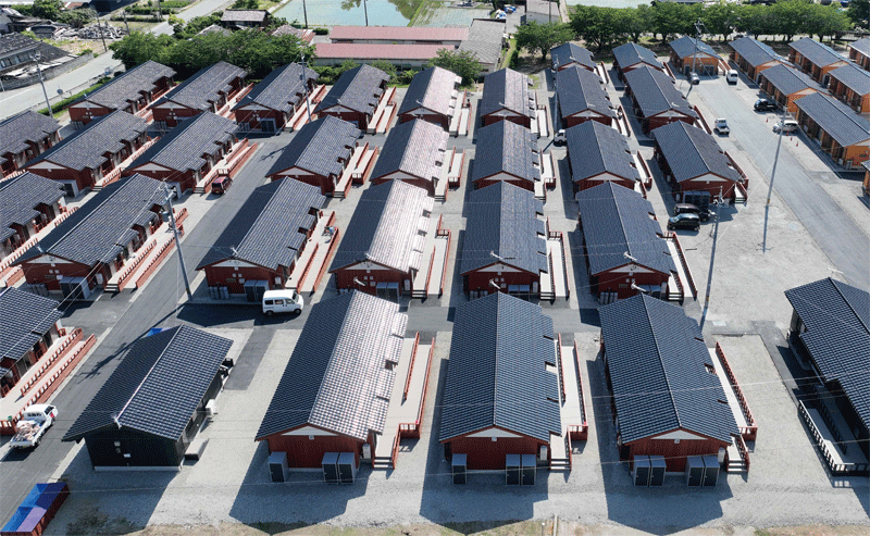 デコスファイバーは、熊本地震、熊本豪雨災害、能登半島地震の際、恒久利用を前提とした木造応急仮設住宅に累計1,798戸採用されており、被災地復興に大きな役割を担った