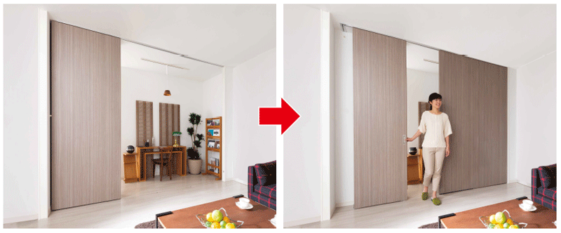 在宅勤務が定着するなかで、空間を多目的に利用できる移動間仕切りのニーズが高まっている。移動間仕切りは、間仕切りを移動することで空間を自在に変形させ、生活シーンに合わせて活用できる。パネルを収納することで、リビング空間を広く活用でき、パネルを閉めて空間を仕切れば、個室やテレワークスペースとして利用が可能だ。