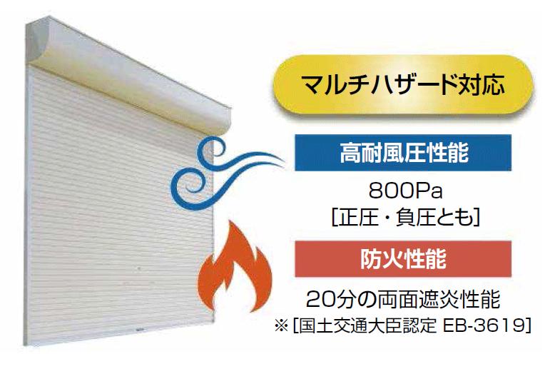 【三和シヤッター工業】耐風圧性能・防火性能を両立マルチハザード対応の耐風形軽量シャッター「耐風ガードLS」