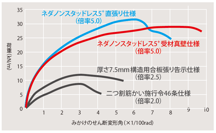 (ネダノン スタッドレス5+の試験データ:(公財)日本住宅・木材技術センターにおける倍率認定試験結果より)