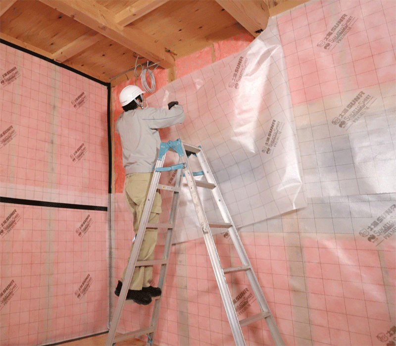 裸のグラスウール断熱材「太陽SUN」と「太陽SUNR」は、断熱性・気密性の施工精度を高めやすいことから、長年支持され続けてきた。ここにきて上位等級の創設により、断熱等級6・7 に挑戦しようという流れが大きくなってきている。「等級6、7をきっかけに太陽SUNR と、別張り防湿施工を寒冷地、温暖地を問わず普及させていきたい」考えだ。2019 年に福島県須賀川市の本社・長沼工場に建設した、断熱体感棟「パラマン館」の見学者も増加している。屋根・天井、壁、床に「太陽SUNR」を使用し、グラスウールのみでの高い断熱効果を体感できることが大きな説得力となっている。